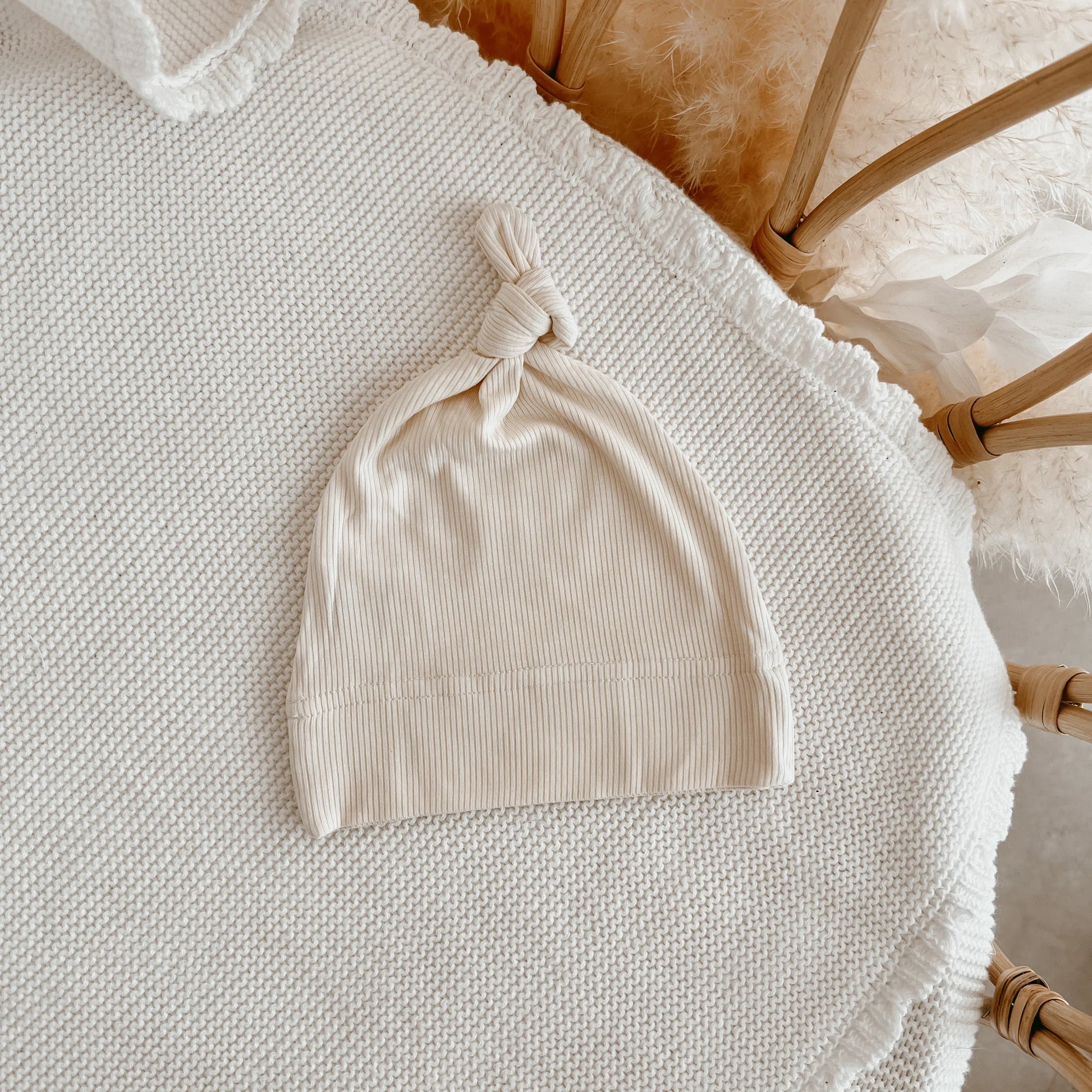 Ribbed Bamboo Knotted Beanie - Vanilla