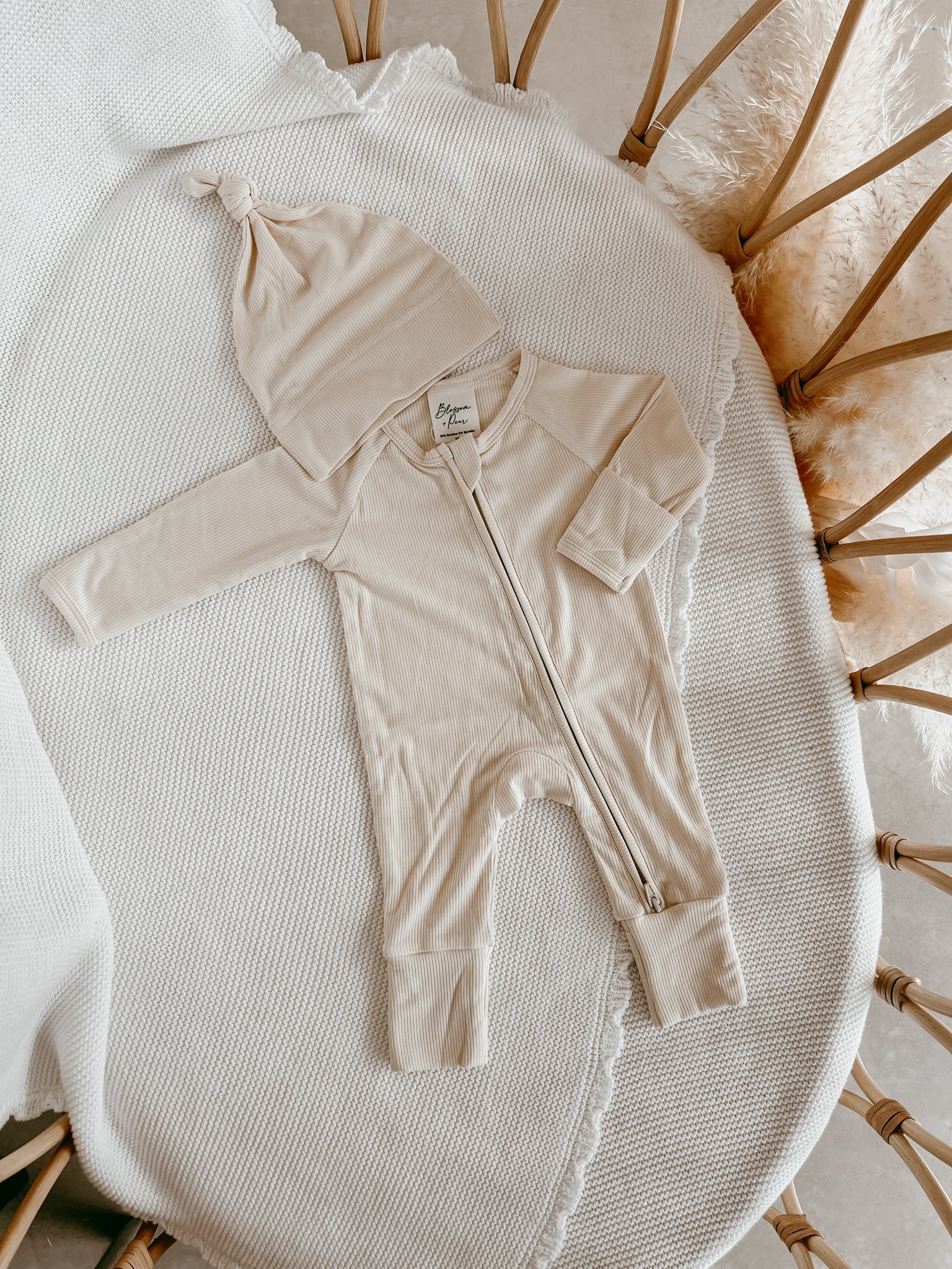 Ribbed Bamboo Zip Growsuit - Vanilla